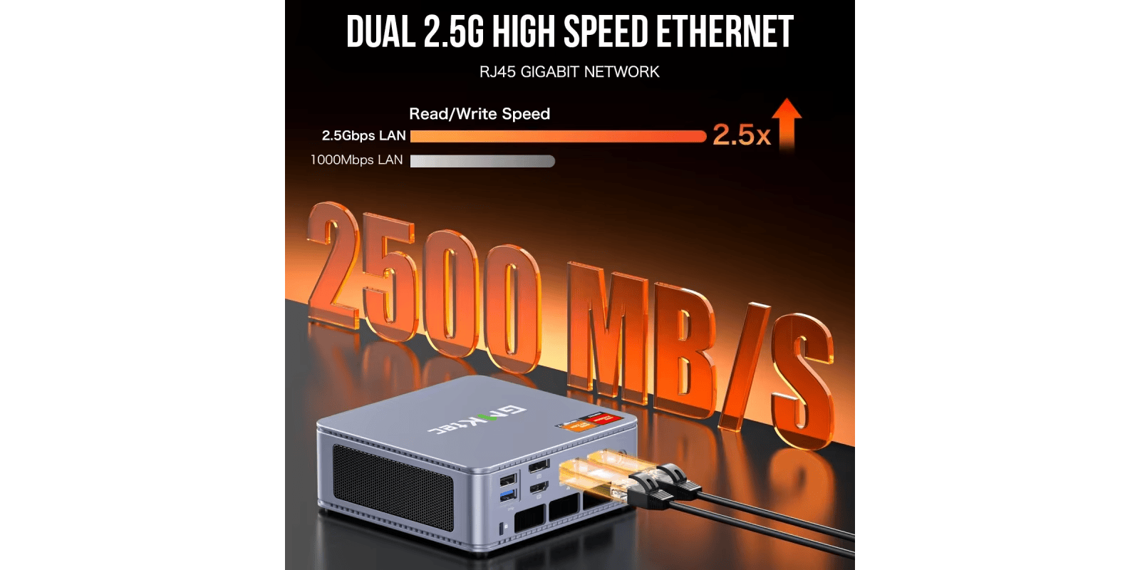 The dual fan design keeps the GMKtec Mini PC GMK K6 cool. This is important for it to work well, even when it’s doing hard tasks.